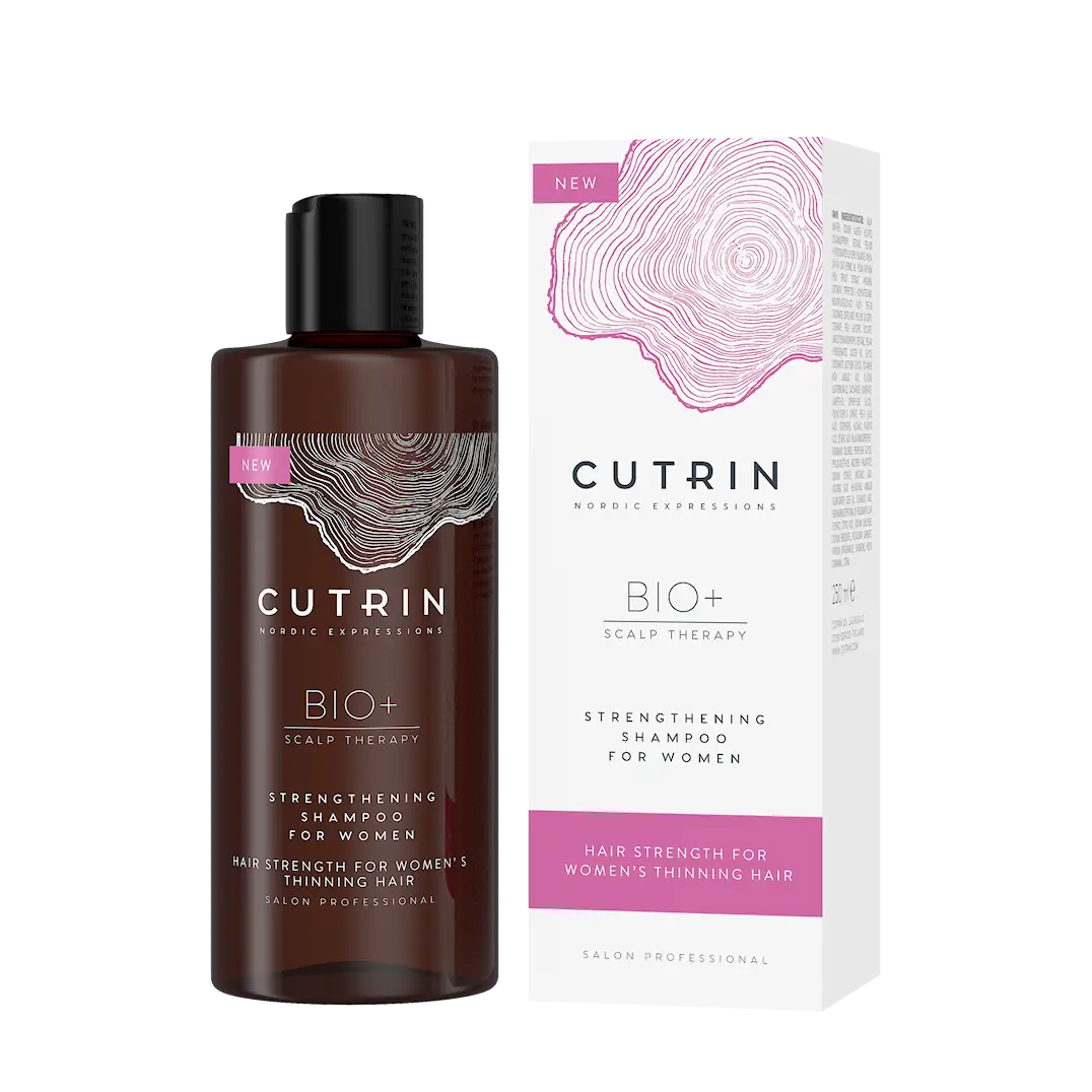 Rensende og styrkende sjampo for kvinner med tynt hår og/eller som sparer til langt hår. Skånsomt rensende sjampo som er egnet for fargebehandlet hår. Styrkende sjampo med cutrin hair vitality-teknologi, som kombinerer beroligende og beskyttende naturlig nordisk havreolje med vitamin f og anagain™ for et sunt hår.