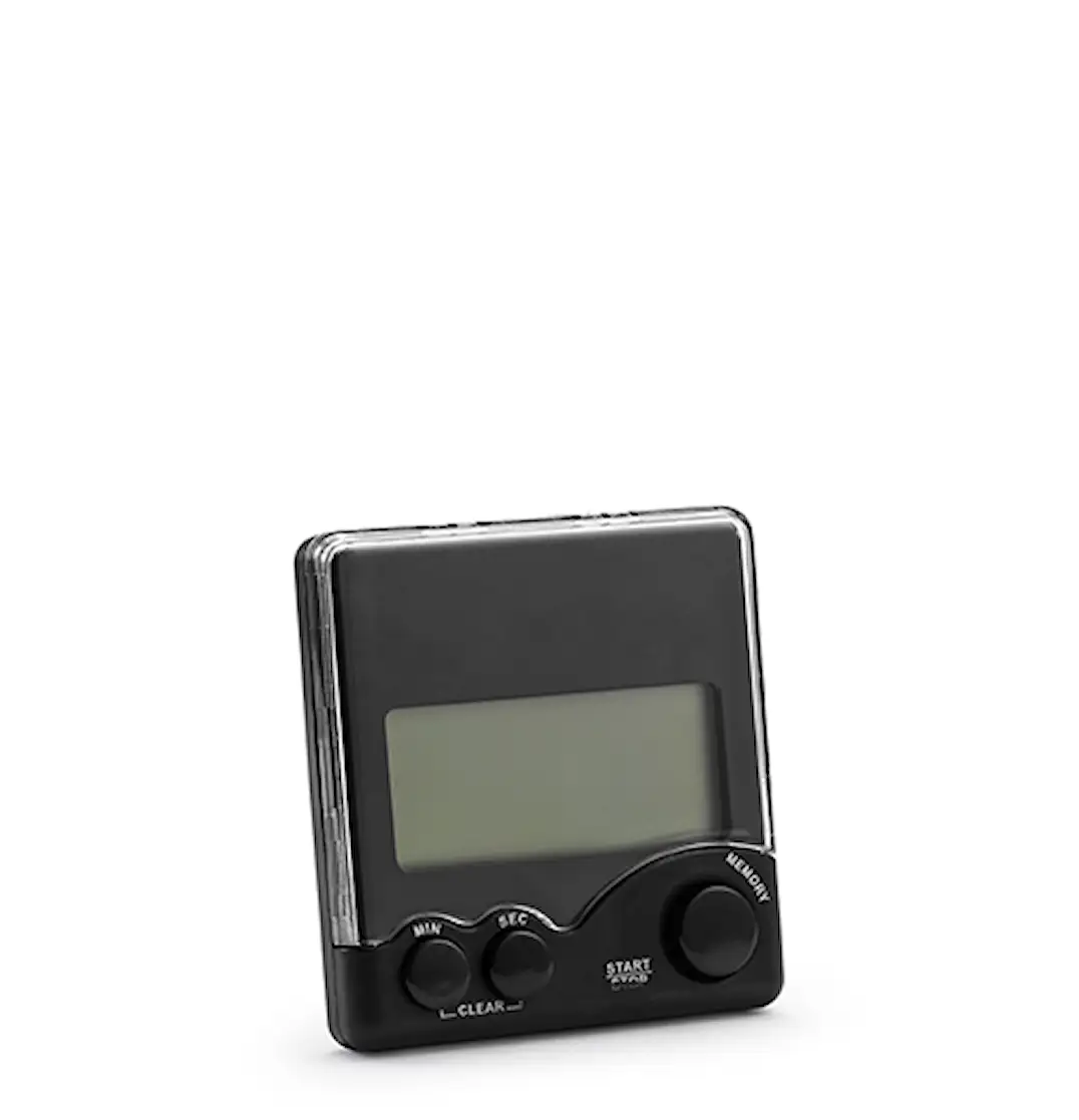 Digital timer i sort for presis tidskontroll ved farge- og behandlinger i salong.