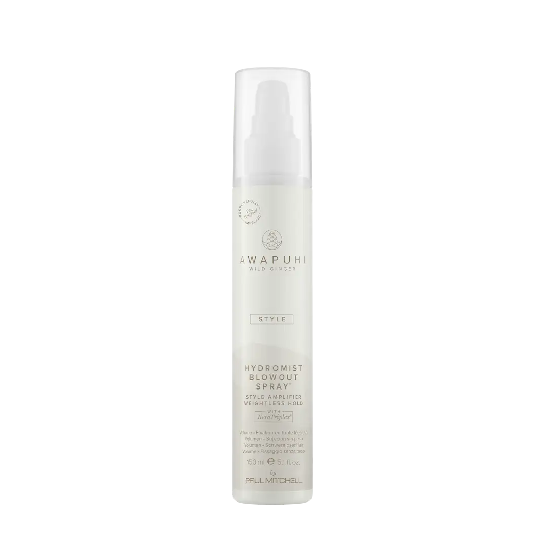 Awapuhi WG Hydromist Blow-Out Spray er en lett styling spray som gir ekstra glans og beskytter håret mot varmeverktøy. Denne sprayen er laget for å gi håret et glatt, glansfullt utseende og hjelper med å bevare håret selv ved bruk av føner eller rettetang.