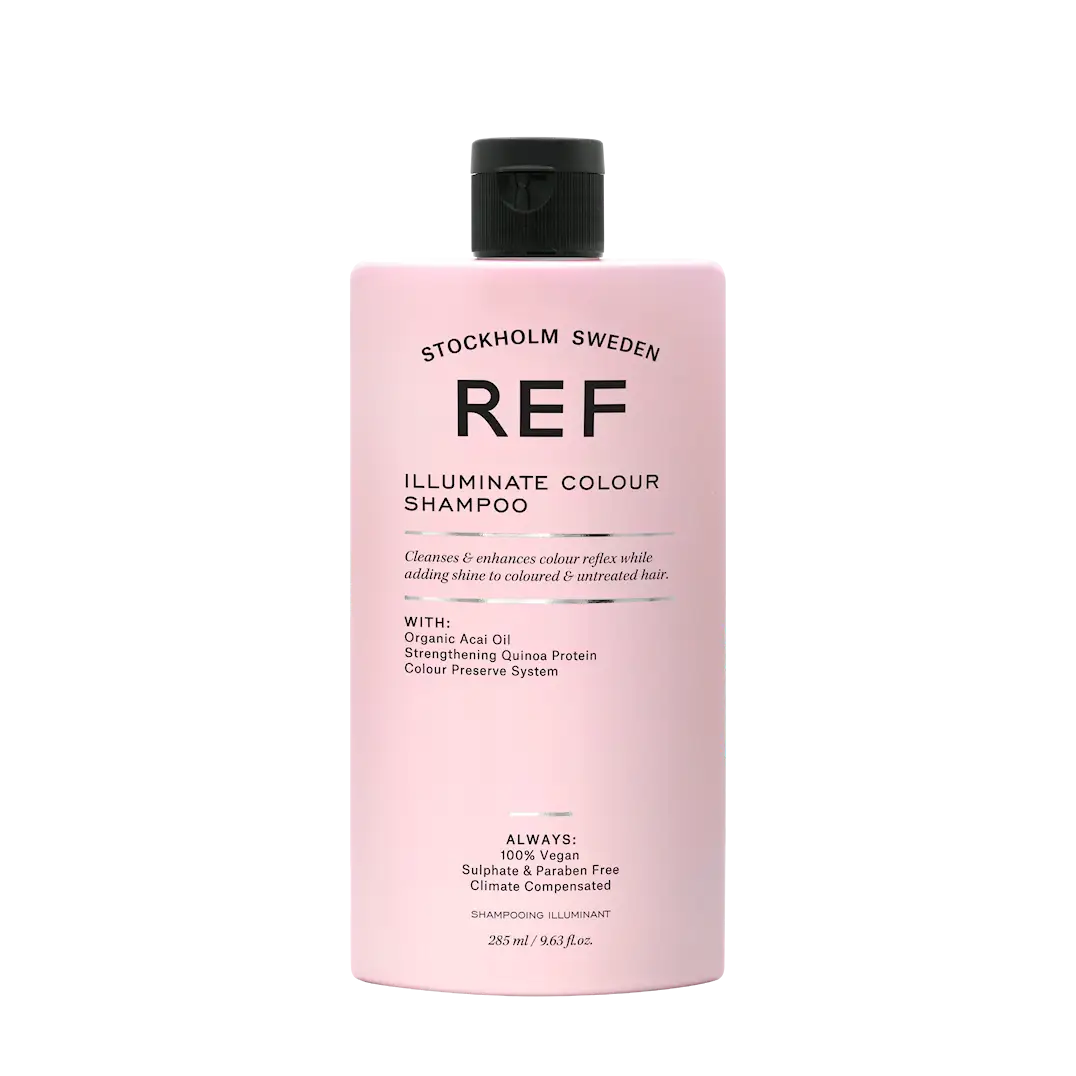 REF Illuminate Colour Shampoo er en sulfatfri, vegansk sjampo formulert for å beskytte og forsterke hårfargen, samtidig som den tilfører intens glans og reduserer frizz. Den er ideell for alle hårtyper, spesielt fargebehandlet hår, og gir en silkemyk finish som fremhever hårfargens dybde og refleksjon.