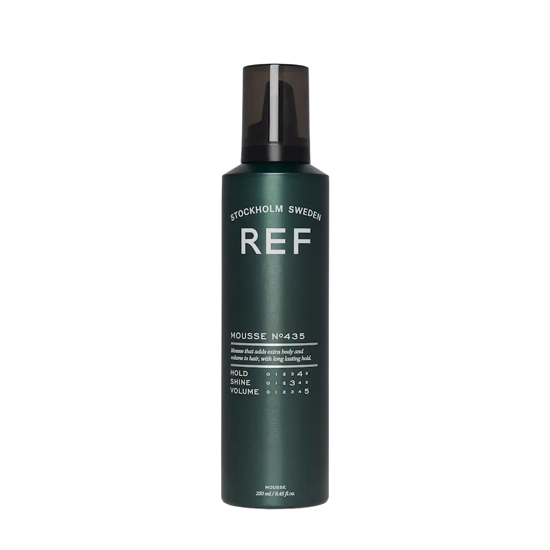 REF Styling Mousse N°435 er en lett og effektiv hårmousse som gir håret struktur, volum og langvarig hold uten å tynge det ned. Den luftige formelen gjør det enkelt å bygge opp ønsket volum, samtidig som håret etterlates mykt og fleksibelt. Moussen er ideell for alle hårtyper og lengder, og passer perfekt for både naturlige frisyrer og mer strukturerte stylinger.