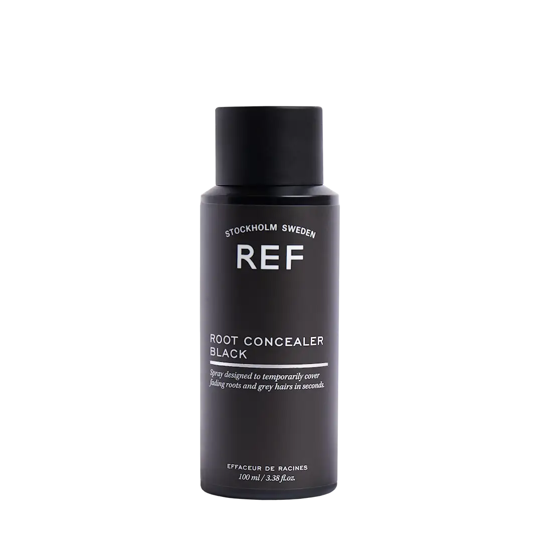 REF Stockholm Root Concealer er en profesjonell, vegansk og hurtigtørkende spray utviklet for å midlertidig dekke ettervekst og grå hår. Den gir umiddelbar farge og vaskes enkelt ut ved neste hårvask. Produktet er tilgjengelig i fire nyanser for å matche ulike hårfarger.
