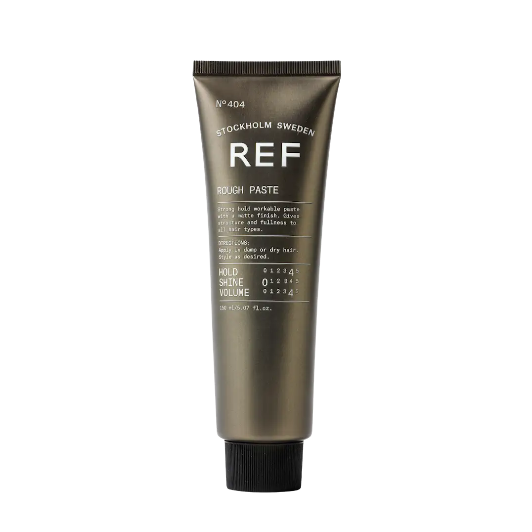 REF Rough Paste N°404 er en matt stylingpaste som gir håret en røff tekstur og sterk hold. Den fleksible formelen gjør det enkelt å skape ønsket definisjon og struktur, samtidig som håret føles og ser fyldigere ut. Produktet er ideelt for alle hårtyper og lengder, og passer perfekt for både naturlige frisyrer og mer strukturerte stiler.