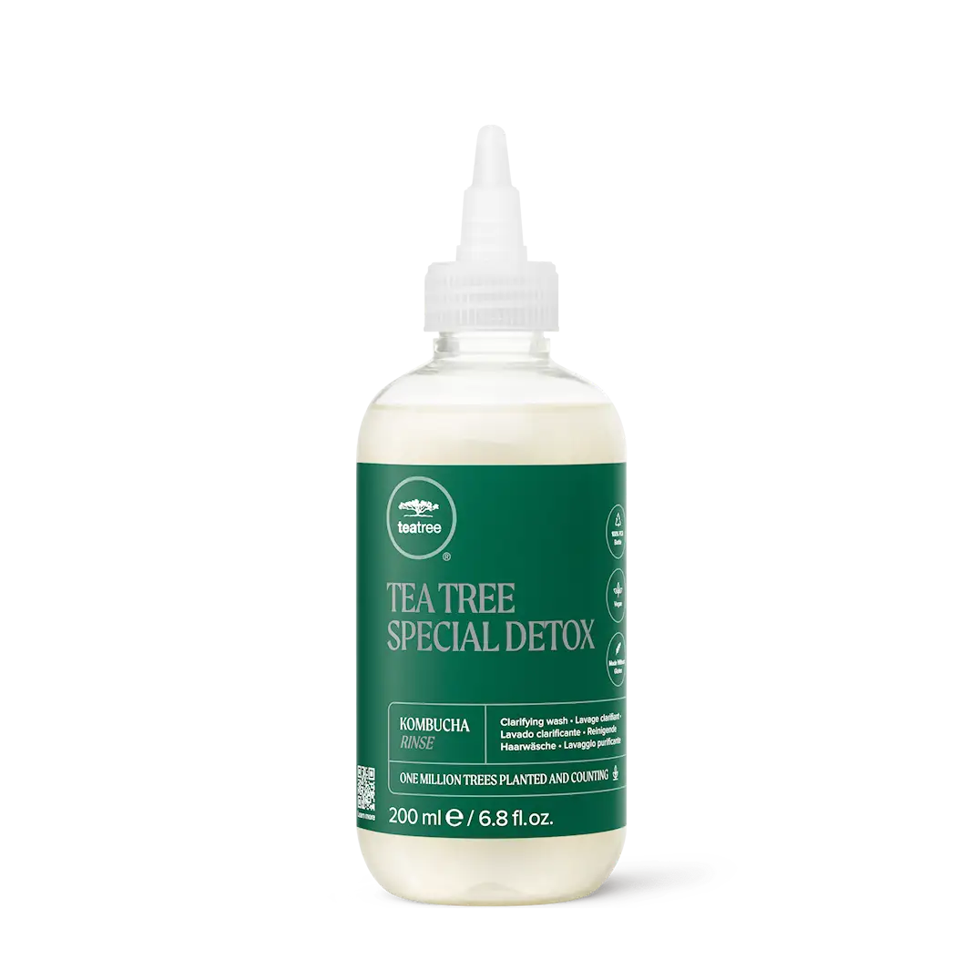 Denne detox skyllingen er laget med kombucha-ekstrakt og tea tree olje for å rense og revitalisere håret. Den fjerner produktrester og urenheter, etterlater håret friskt og lett. Perfekt for å bruke etter en sjampo for en dypere rens og for å balansere håret og hodebunnen.
